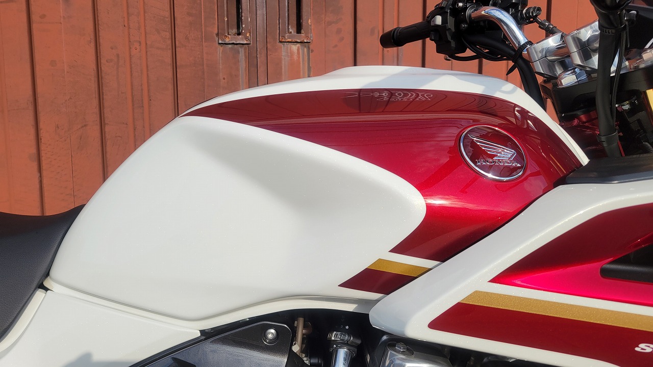 今回「CB1000 SUPER FOUR」発売から30周年を記念し、カラーリングには、パールホワイトを基調に、鮮やかなキャンディーレッドと煌びやかなゴールドメタリックを組み合わせた「パールサンビームホワイト」を採用。存在感のあるカラーリングとしております。